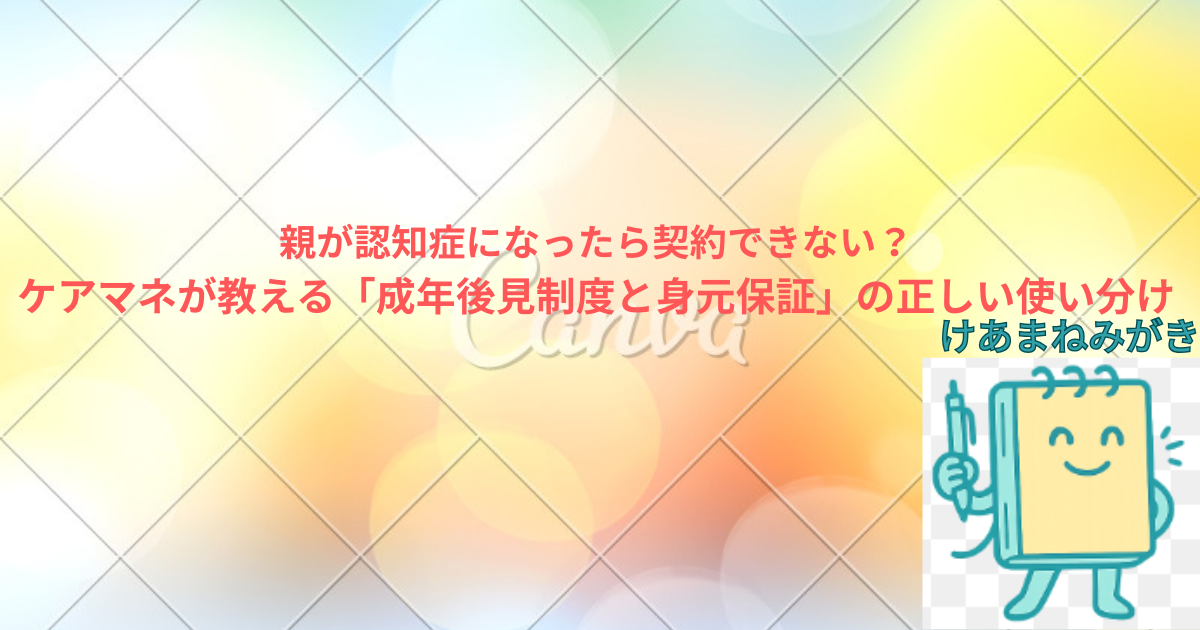 親が認知症になったら契約できない?ケアマネが教える「成年後見制度と身元保証」の正しい使い分け